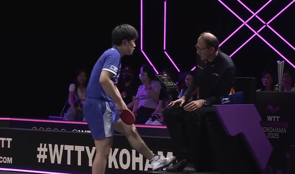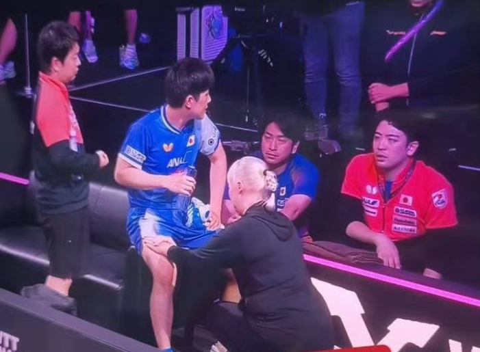 结果接下来王楚钦开始了反击,连赢2局,将比分追到了2:3,这个时候的张本智和似乎有些慌了,感觉王楚钦正在起势,于是在男单决赛第六局,张本智和申请医疗暂停,由团队人员按摩腿部。
